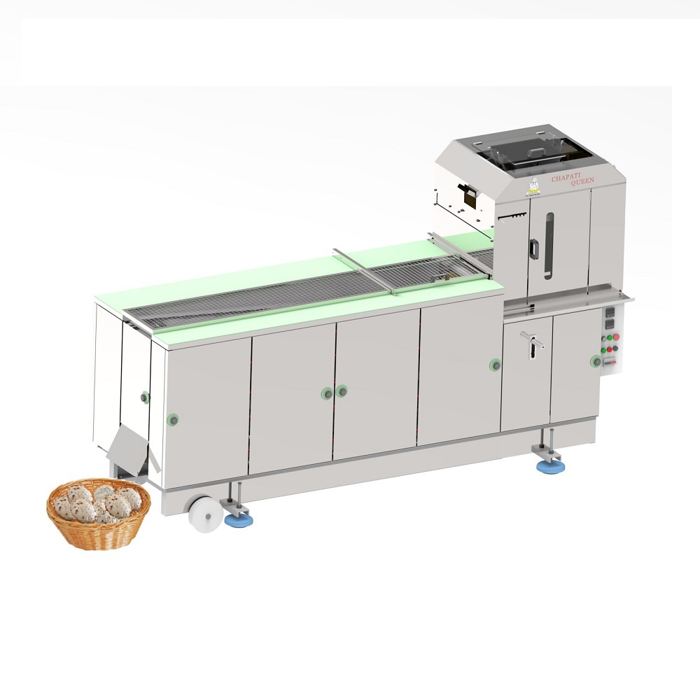 1) The first side baking of chapatti is on a tawa conveyor the way you make chapatis at home. This is the only machine in the world using a Tawa conveyor. For perfect & even baking of curved tawa is a must.